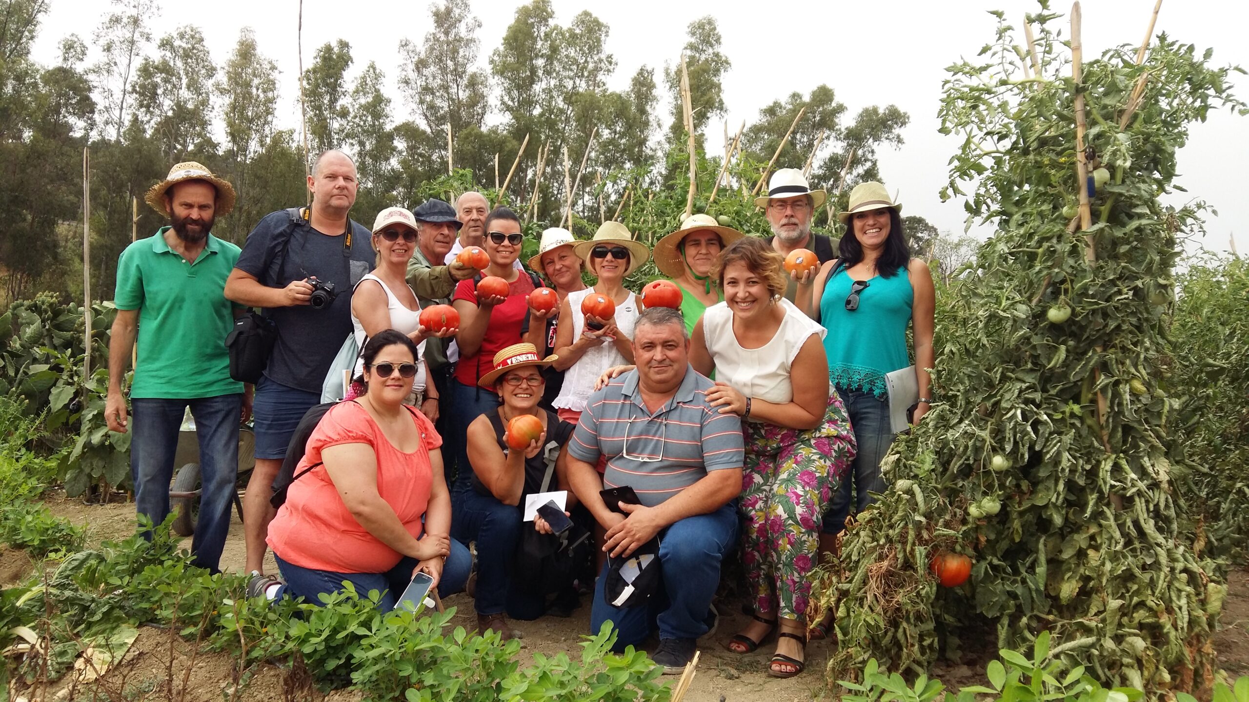 Los agricultores y agricultoras que cultivan Tomate Huevo Toro, se reúnen en plena de campaña.